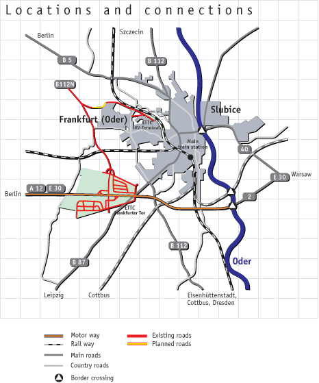 Расположение рядом с трассой E30 Берлин — Варшава — Москва на автобане А12 перед польской границей, позволяет максимально быстро попасть  на него.